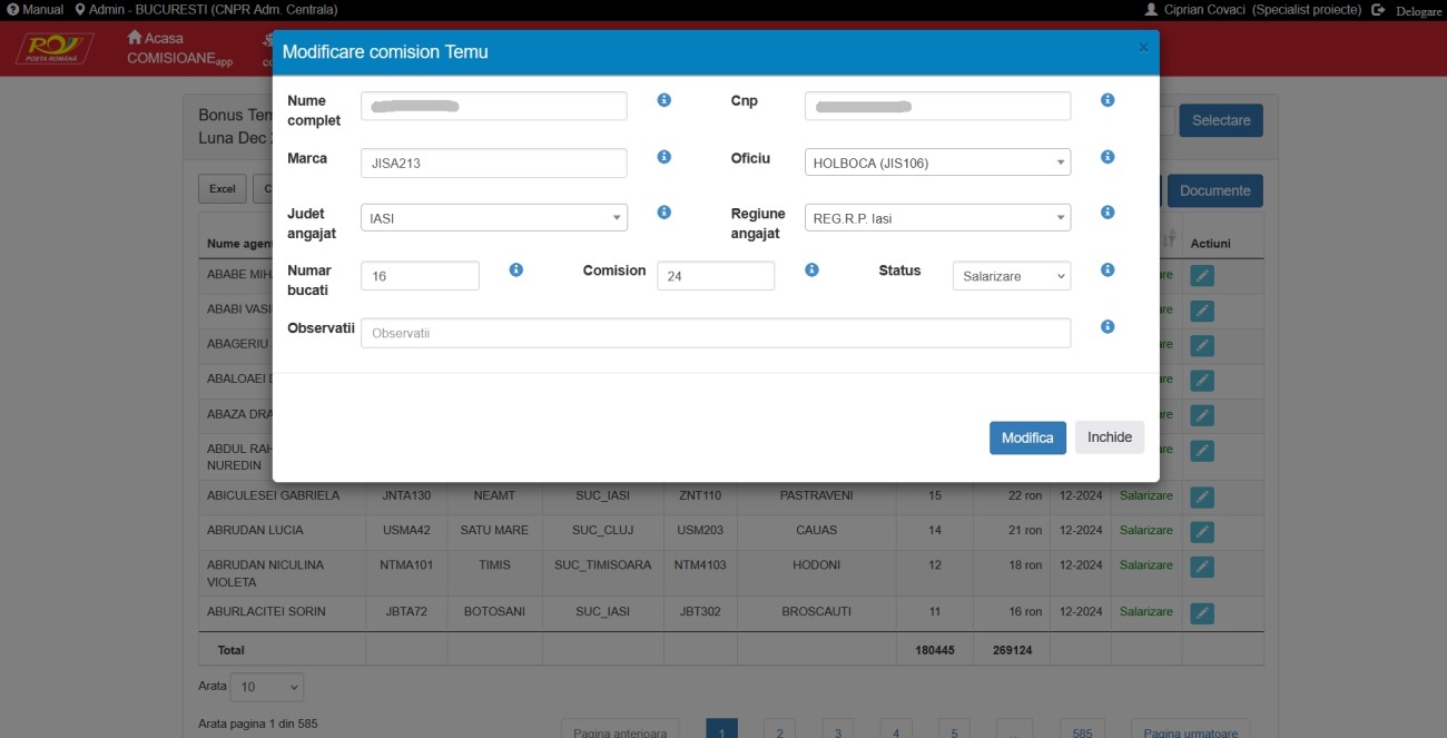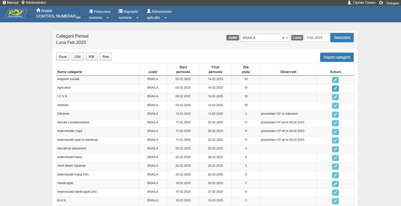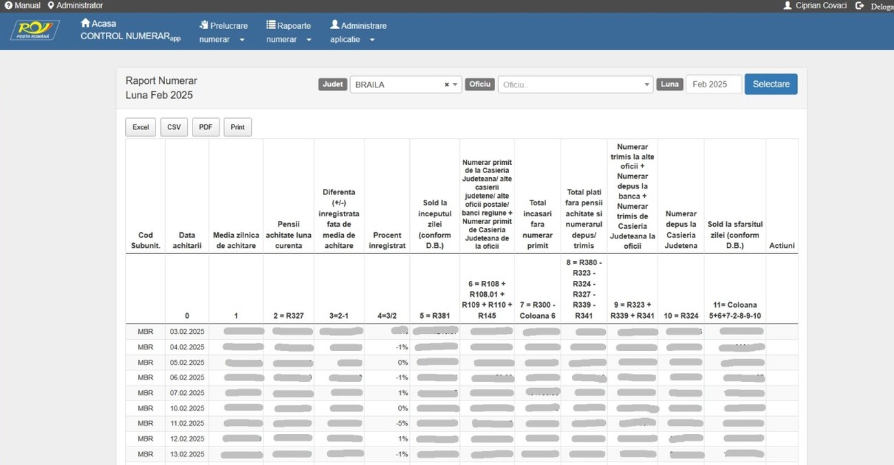 This application is used to monitor and optimize the cash flow used for paying various social rights to romanian citizens. The application includes importing information from other databases using api services, monitoring the differencies between the cash amount scheduled and the cash amount paid each day and many filtered reports.
