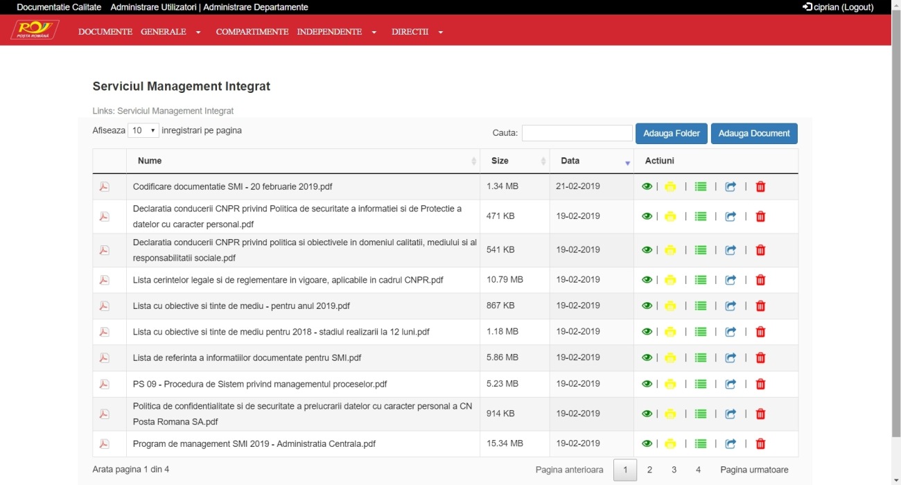The procedures are organized based on the company's departments. For each department, the documents can be organized in folders, based on the subdivisions of that department. Several operators can manage these procedures, based on access rights.