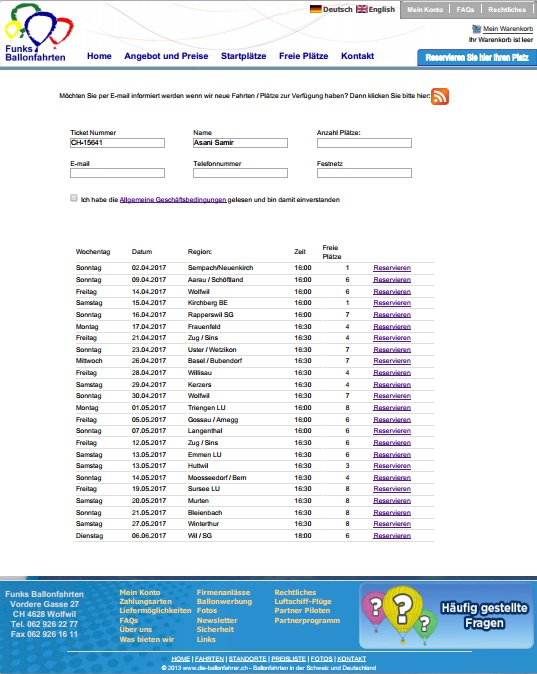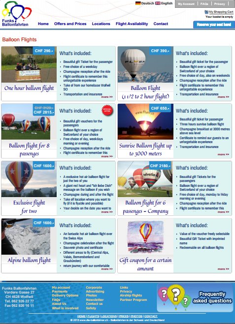 This website presents another ballooning company from Germany. The user can order tickets and also can book flights.